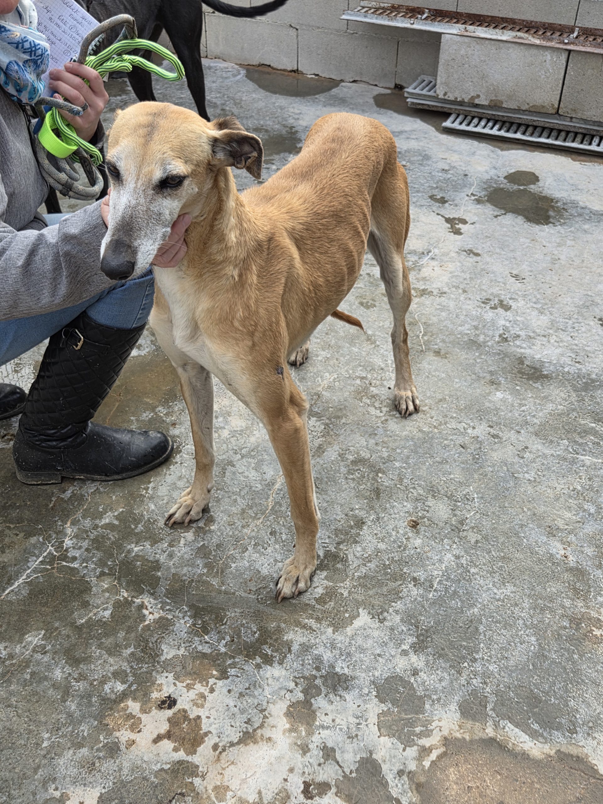 BROTADA , galga née le 12 juillet 2020. Petit gabarit d’environ 62 cm. Ok chats