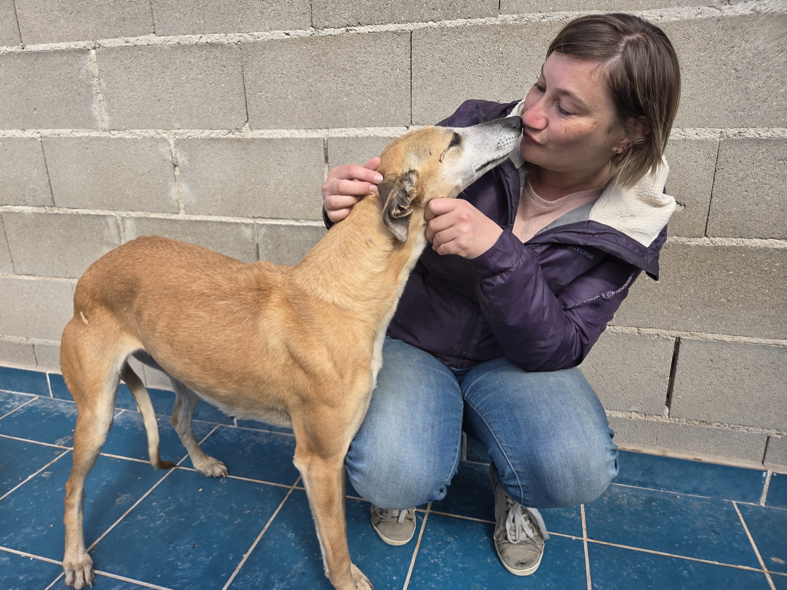 BROTADA , est une super câline qui vous accueille avec son magnifique sourire et en battounant de la queue. Elle n’est pas du tout craintive et vient volontiers se blottir dans vos bras pour y recevoir des caresses.