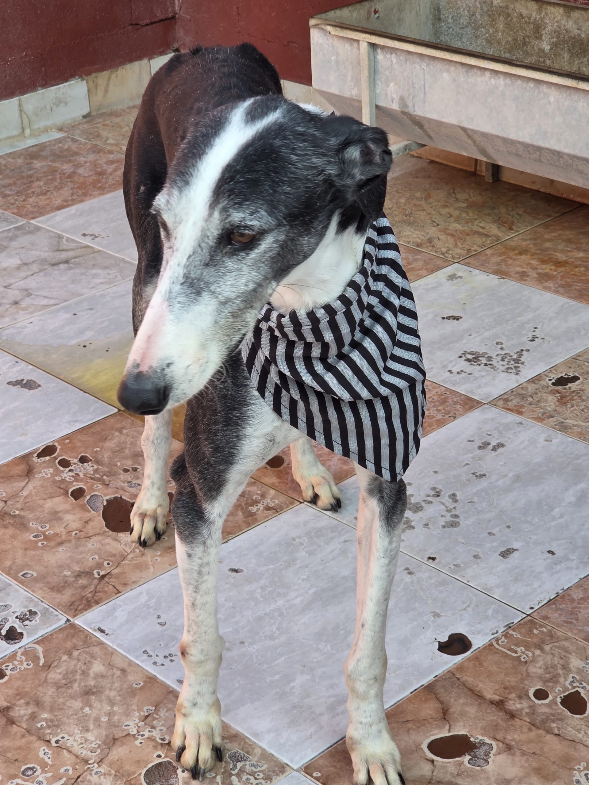 Son regard ne vous laissera pas insensible car Cosmo ne peut que vous toucher. C’est un grand galgo , calme , très câlin , sans peur. Il s’entend bien avec ses congénères ( il est dans un paddock avec des mâles)