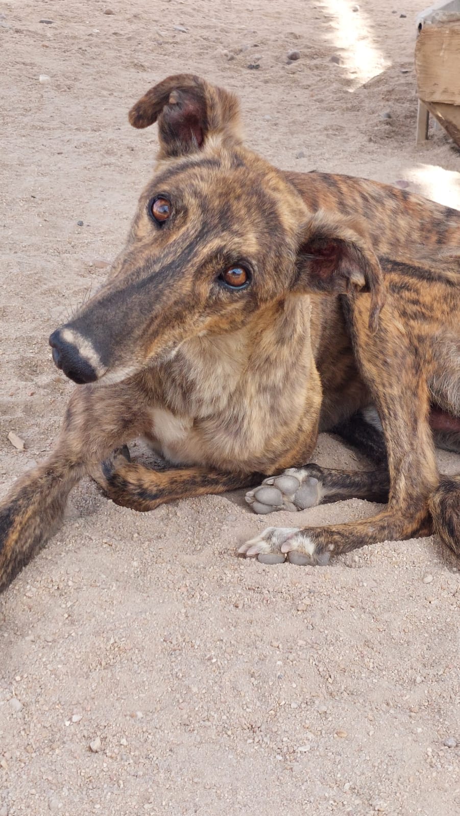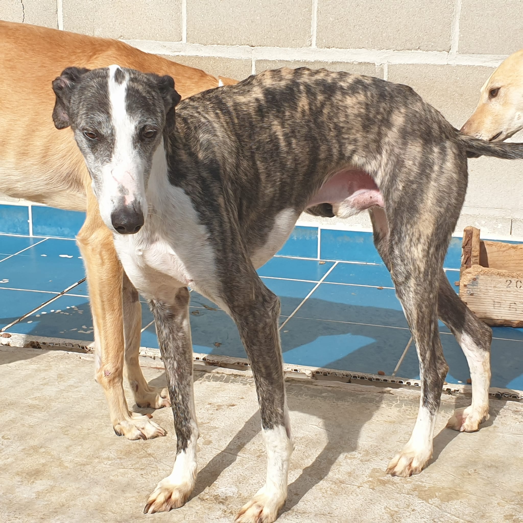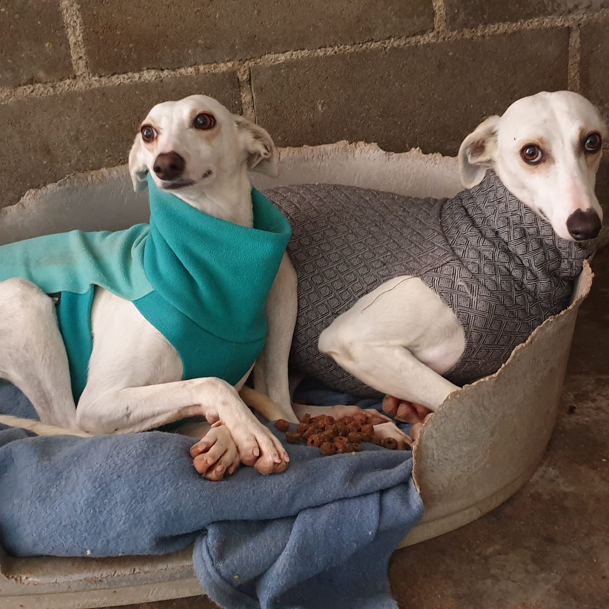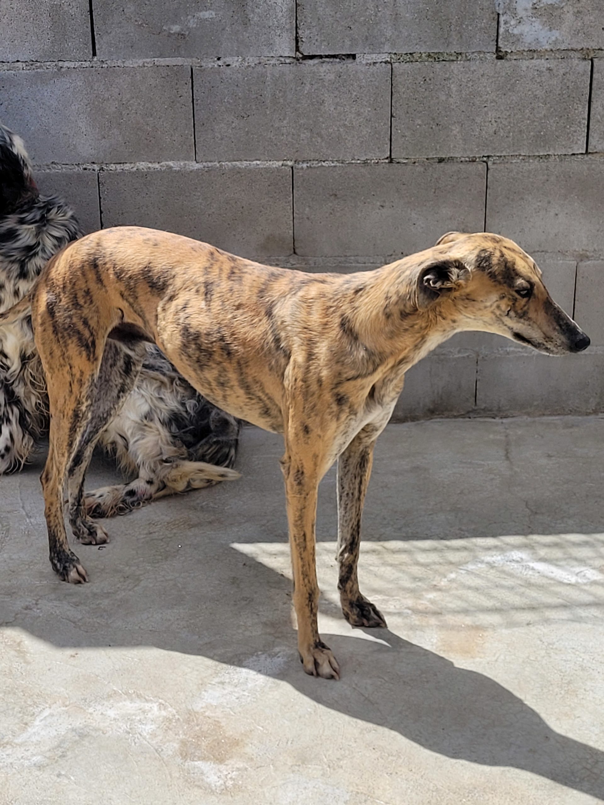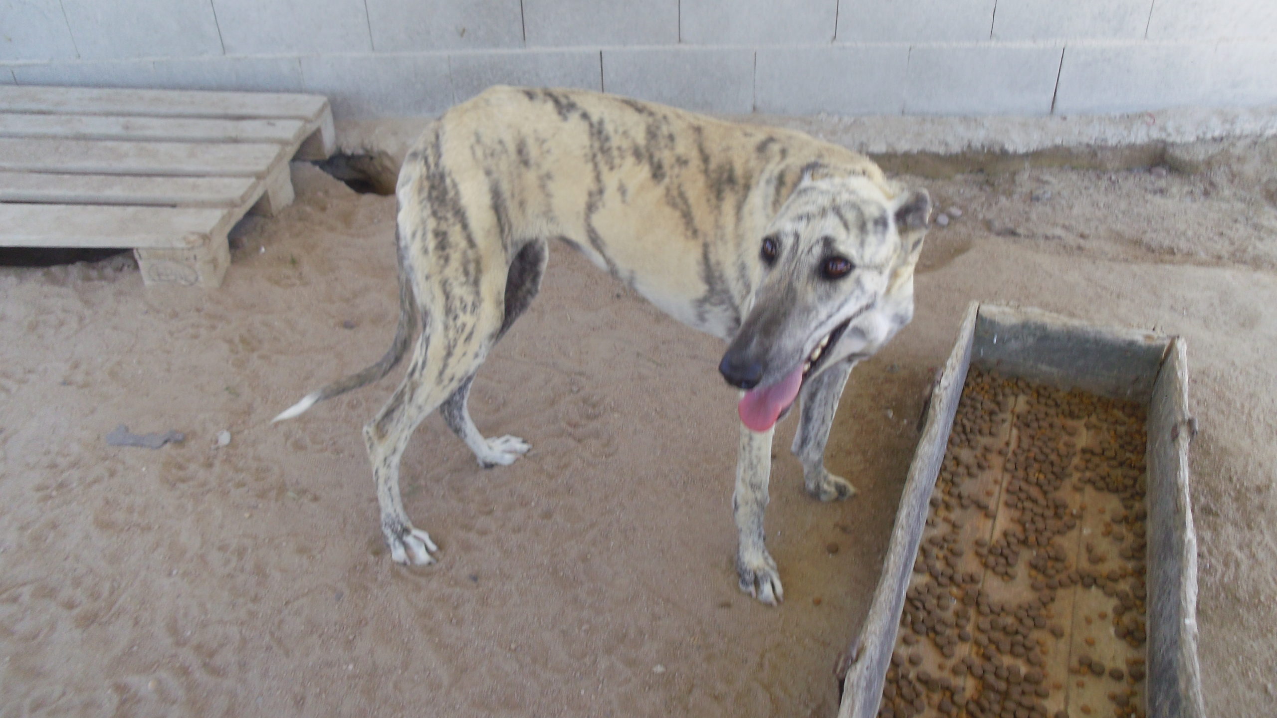 Les galgos craintifs du refuge.