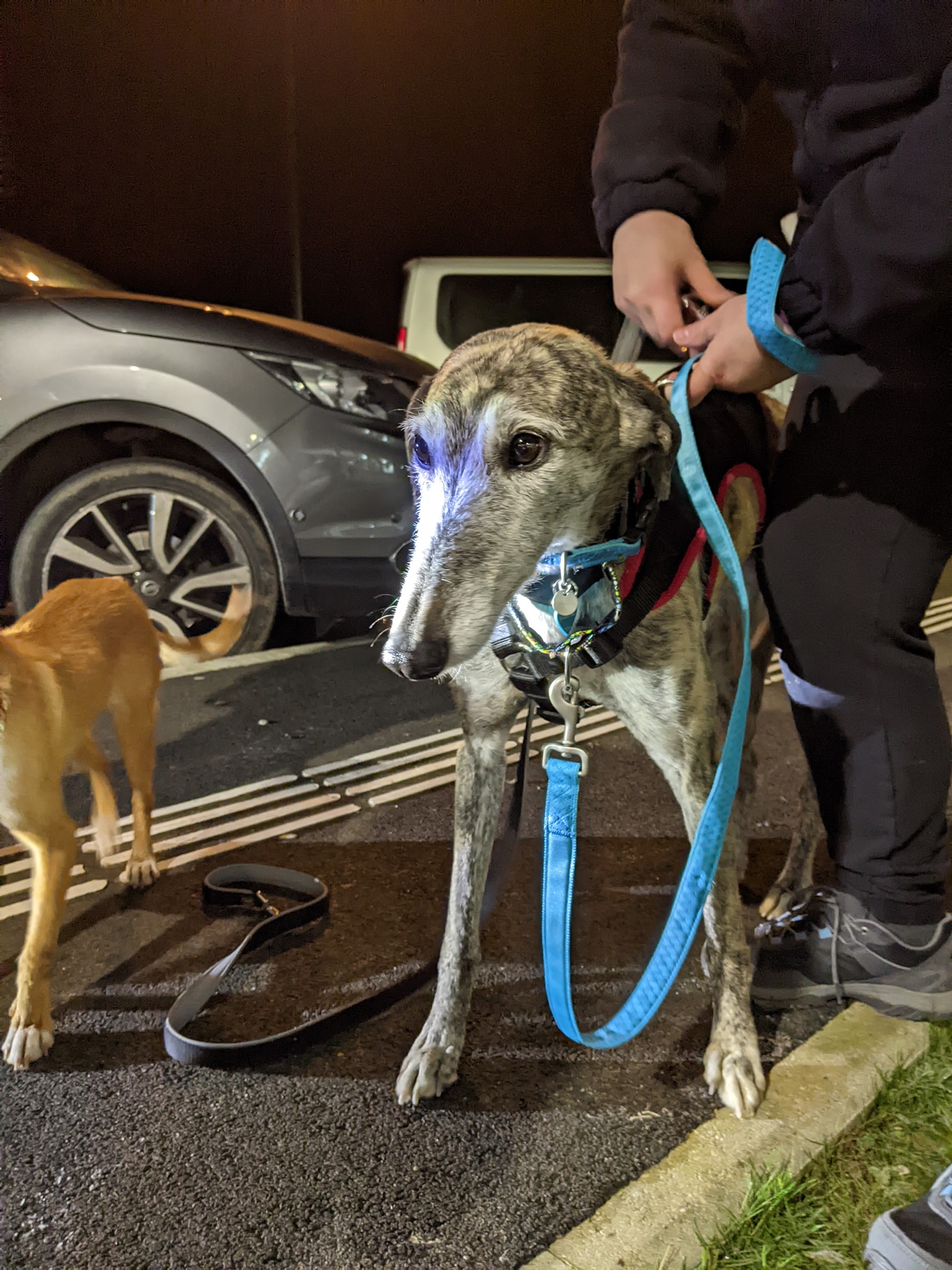 C’est toujours un moment de plaisir et d’émotions tout en veillant à la sécurité de tous, collier et harnais 3 points avant le départ dans leur nouvelle famille.